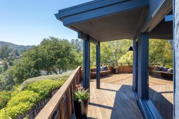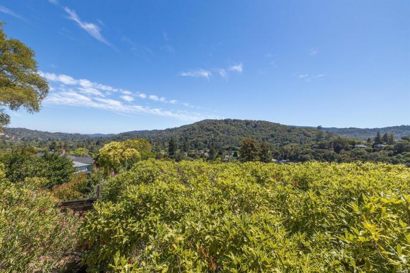 Located on a quiet street in sunny San Anselmo sits 15 Skyline Road, a single-level home that is drenched with sunlight & spectacular sweeping 180-degree views stretching from the Hawthorne Hill & Ross Valley, including the S.F. skyscraper. This two-bedroom, two-bath is ready to move into with its cozy wood-burning fireplace in the living room. The kitchen and Dining area leads to the front deck & a sheltered, flower-filled backyard just waiting for the new owners to add their own new touches. The quiet primary bedroom has ample closet space and opens up to a deck that overlooks the backyard patio with magnificent views of the San Anselmo and Fairfax hills. The 2nd bedroom is nicely sized with bright natural light. In addition, the backyard is very private & a delightful place for expansion. Other features include floor-to-ceiling windows and hardwood floors throughout, plus central air conditioning. Enjoy a spacious balcony perfect for indoor/outdoor entertaining and lovely gardens with mature landscaping in the front and back.